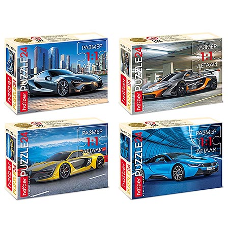 Пазлы " Hatber " 24элемента Sport car 13*17,5см, 4 дизайна, картонная упаковка