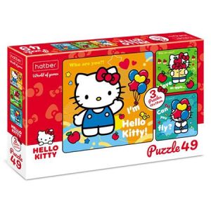 Пазлы " Hatber " 49элементов Hello Kitty 19*19см, 3 картинки в 1 коробке, картонная упаковка