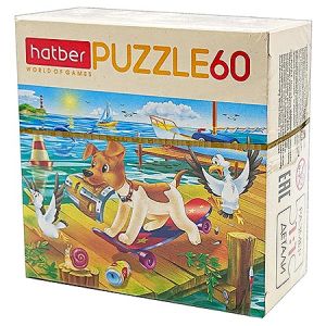 Пазлы " Hatber " 60элементов Щенок на скейте 23*16,5см, картонная упаковка