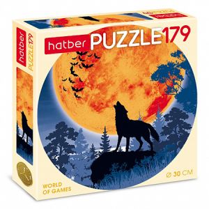 Пазлы " Hatber " 179элементов Полнолуние волк d=30см, картонная упаковка