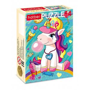 Пазлы " Hatber " 54элемента Веселые единорожки 17,5*13см, 4 дизайна, картонная упаковка