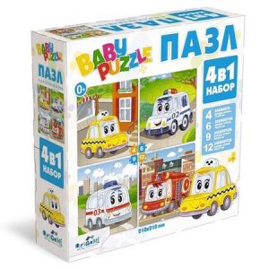 Пазлы " Origami " 4в1 Транспорт (4, 6, 9 12) элементов, картонная упаковка