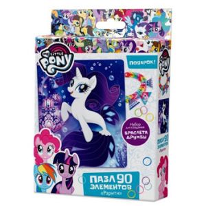 Пазлы " Origami " 90элементов My little pony Рарити 17*21см, для создания браслета- 11 подвесок, 200 резиночек, замочки, крючок, картонная упаковка 18*3*11см, европодвес