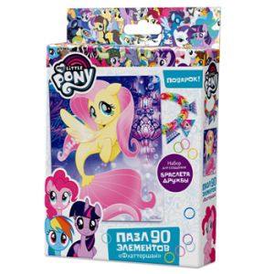 Пазлы " Origami " 90элементов My little pony Флаттершай 17*21см, для создания браслета- 11 подвесок, 200 резиночек, замочки, крючок, картонная упаковка 18*3*11см, европодвес