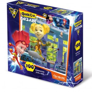 Пазлы " Origami " 100элементов Фиксики Шпуля 21*21см, магнит, картонная упаковка 15*15*4см