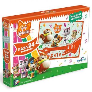 Пазлы " Origami " 24элемента 44Котенка. Гитара 22*33см, наклейки, картонная упаковка