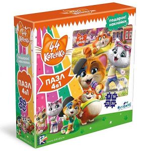 Пазлы " Origami " 4в1 44Котенка. К шоу готовы (9-16-25-36) элементов, наклейки, картонная упаковка