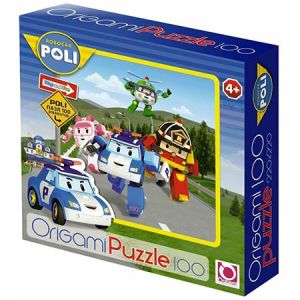 Пазлы " Origami " 100элементов Robocar Poli. Эмбер, Поли и Рой, 22*22см, картонная упаковка