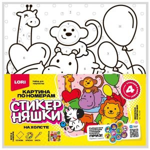 Картина по номерам " Lori " 20*20см Стикерняшки.Веселая компания, состав набора: холст с контуром на подрамнике, краски, кисть, инструкция, картонная упаковка
