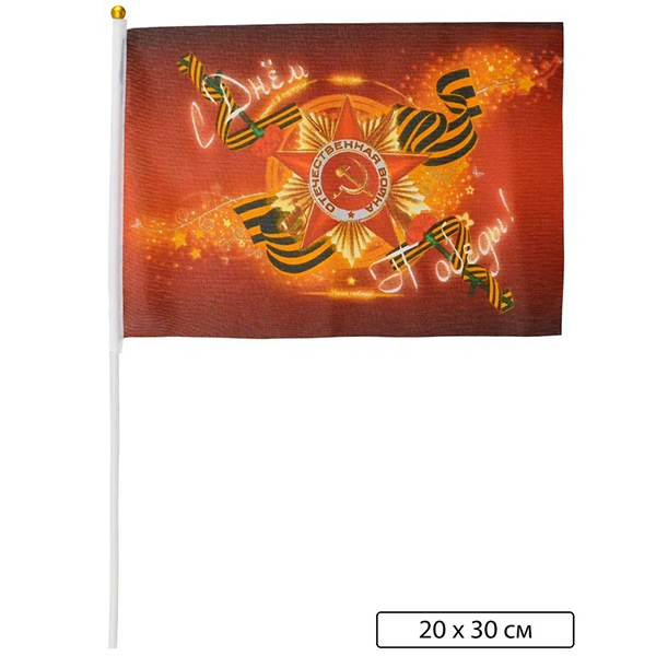 Флаг 9 мая " Basir " 20*30см на палочке, искусственный шелк