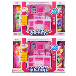 Набор " Кухня " 48*32*11см в комплекте: мебель, посуда, инструменты, овощи и фрукты, световые эффекты, музыка, работает от батареек, от 3лет, картонная упаковка с пластиковой ручкой
