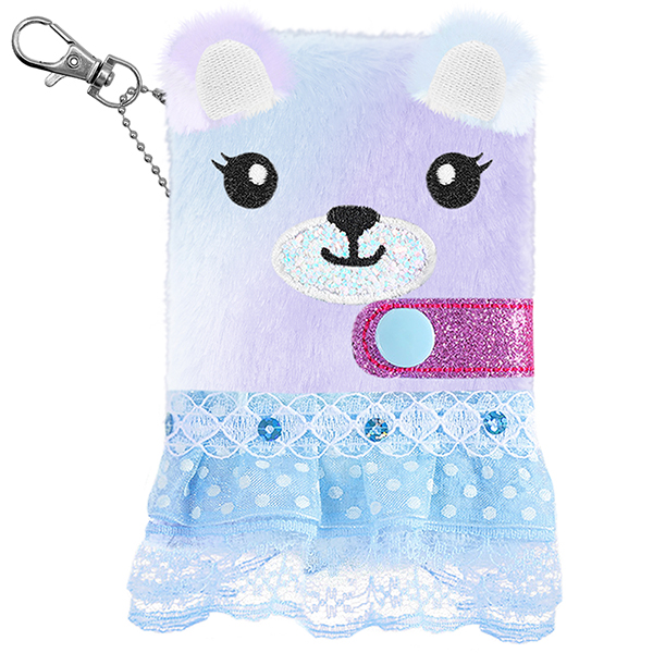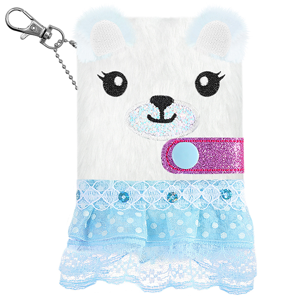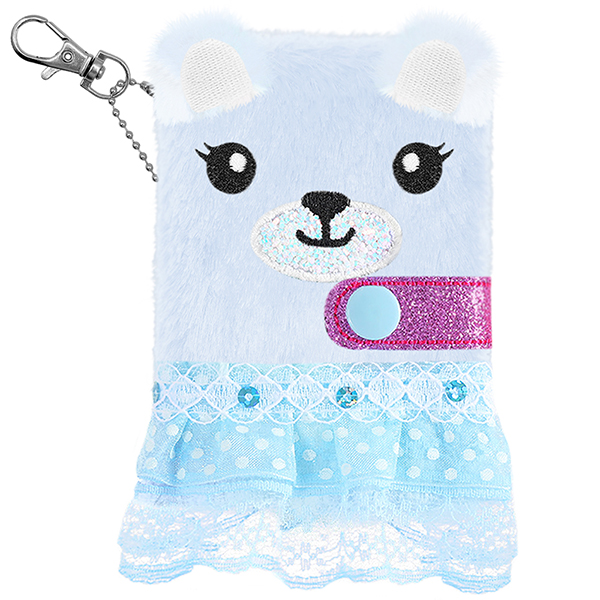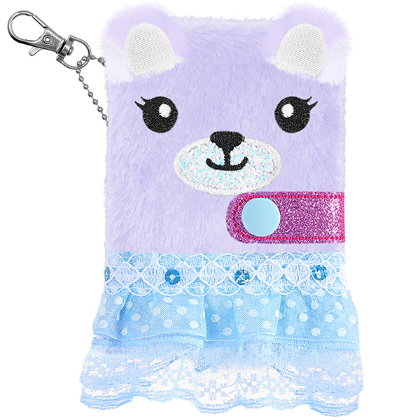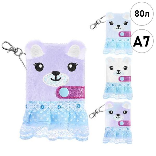 Блокнот на кнопке МАЛЫЙ ФОРМАТ А7 искусственный мех 80л " KWELT " Мишка, без линовки, сшивка, тонированный офсет, блестки, брелок, ассорти (без возможности выбора цвета), 8*10,5см