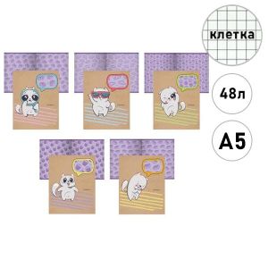 Тетрадь двойная обложка А5 48л клетка " Эксмо " Сладкие мечты, офсет, на скобе, обложка - крафт-картон, вырубка, 5 дизайнов в спайке