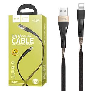 Кабель сетевой USB 8 pin " Hoco " U39 Slender черный/золотая вставка, плоский, 1,2м, 2,4А, ткань