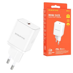 Блок питания сетевой " Borofone " BN6 Field Single Port белый, 3,0А, QC3.0, PD3.0, 20W, Type-C, пластик (кабель в комплект не входит)