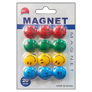 Набор магнитов " KWELT " для доски 12шт 20мм Смайлики ассорти, картонный блистер 12,5*8,3см, европодвес