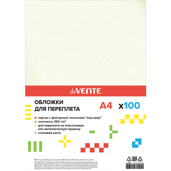 Обложка для переплета " deVente " Delta А4 картон слоновая кость с тиснением кожа, 250г/м2, 100л