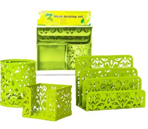 Набор металлический " KWELT " ажурный 3пр.салатный(стакан круглый,бокс для бумаг9*9*9см,подставка для визиток и писем)