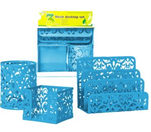 Набор металлический " KWELT " ажурный 3пр.синий(стакан круглый, бокс для бумаг 9*9*9см, подставка для визиток и писем)