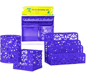 Набор металлический " KWELT " ажурный 3пр.фиолетовый(стакан круглый, бокс для бумаг 9*9*9см, подставка для визиток и писем)