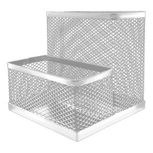 Подставка " KWELT " 2 отделения, 10,5*10,5*10см, металлическая, сетчатая, серебро