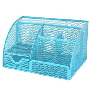 Подставка " KWELT " 7 отделений (1 выдвижное), 22*14*13см, металлическая, сетчатая, голубая, картонная упаковка