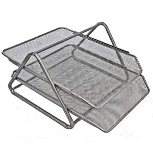 Лоток " KWELT " горизонтальный 2отд, металлический,сетчатый,серебро