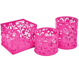 Набор металлический " KWELT " ажурный 3пр.розовый (стакан круглый, бокс для бумаг 9*9*9см, стакан малый)