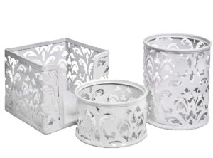 Набор металлический " KWELT " ажурный 3пр. белый (стакан круглый, бокс для бумаг 9*9*9см, стакан малый)