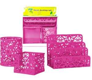 Набор металлический " KWELT " ажурный 3пр.розовый (стакан круглый, бокс для бумаг9*9*9см, подставка для визиток и писем)
