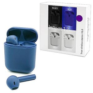 Наушники " inPods-12 " синие, внутриканальные, беспроводные, Bluetooth 5.0, с анимацией, матовое покрытие, кабель для зарядки USB, футляр 45*55мм