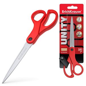 Ножницы " Erich Krause " Unity Asymmetric 18,0см, металлические, пластиковые ручки, красные, картонный блистер, европодвес