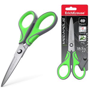 Ножницы " Erich Krause " Megapolis 16,5см металлические, эргономичные ручки, с резиновыми вставками, серо-зеленые, картонная упаковка, европодвес