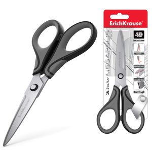 Ножницы " Erich Krause " Megapolis 16,5см металлические, с резиновыми вставками, серо-черные, картонная упаковка, европодвес
