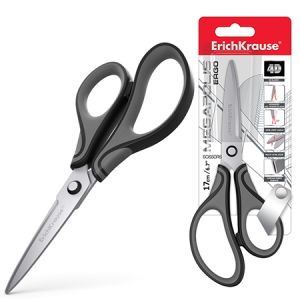 Ножницы " Erich Krause " Megapolis Ergo 17см металлические, с резиновыми вставками, серо-черные, картонная упаковка, европодвес