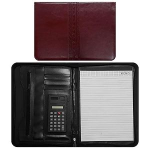 Папка кожзам " KWELT " 33*25*2см бордовая, с бумажным блоком, калькулятор, отделение для карточек, на молнии, держатель для ручки, карман, прошивка по периметру