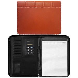 Папка кожзам " KWELT " 33*25*2см коричневая, с бумажным блоком, калькулятор, отделение для карточек, на молнии, держатель для ручки, карман, прошивка по периметру