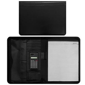 Папка кожзам " KWELT " 33*25*2см черная, с бумажным блоком, калькулятор, отделение для карточек, на молнии, держатель для ручки, прошивка по периметру