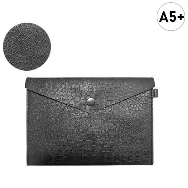 Папка кожзам " KWELT " МАЛЫЙ ФОРМАТ А5+ (24*16,5*0,3см) Крокодиловая кожа, черная, на кнопке, прошивка по периметру