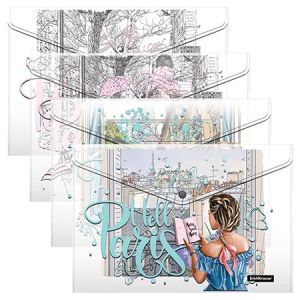Набор папок на кнопке " Erich Krause " А4 4шт Dreamy Girls, пластик 0,16мм, текстура поверхности- зеркало, прозрачные, с рисунком