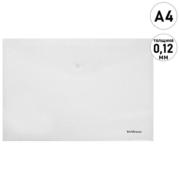 Папка-конверт на кнопке формата А4 из высококачественного прозрачного пластика с текстурой поверхности "апельсиновая корка", на которой не видно отпечатков пальцев и мелких царапин. Предназначена для хранения и транспортировки небольшого количества документов. Надежная застежка-кнопка обеспечивает быстрый доступ к документам. Папка вмещает до 120 бумажных листов. Размер - 232х333мм, толщина - 0.12мм. Код и баркод на каждой единице товара.