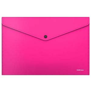 Папка на кнопке " Erich Krause " А4 Glossy Neon розовая, пластик 0,18мм, текстура поверхности- зеркало, полупрозрачная