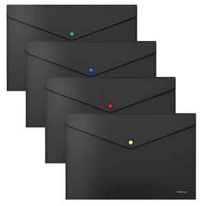 Папка на кнопке " Erich Krause " А4 Matt Black Line черная, пластик 0,18мм, текстура поверхности- песок, непрозрачная, с цветной кнопкой
