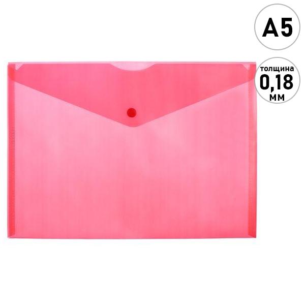 Папка на кнопке МАЛЫЙ ФОРМАТ А5 " KWELT " красная 0,18мм прозрачная