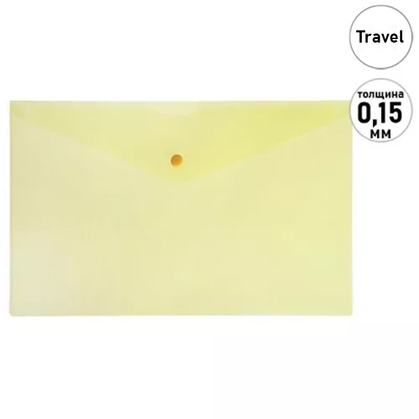 Папка на кнопке " KWELT " МАЛЫЙ ФОРМАТ Travel-Size (260*130мм) матовая желтая, пластик 0,15мм, полупрозрачная