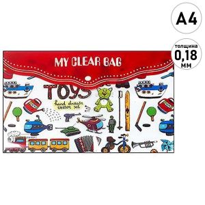 Папка на кнопке А4 " KWELT " Toys, пластик 0,18мм, прозрачная
