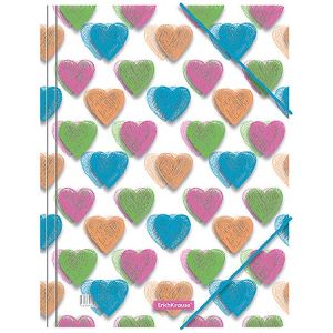 Папка на резинках " Erich Krause " А4 Neon Hearts разноцветная, пластик 0,55мм, текстура поверхности- песок