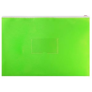 Папка на молнии " Бюрократ " А4+ ZIP Double Neon салатовая, пластик 0,15мм, прозрачная, карман под визитку