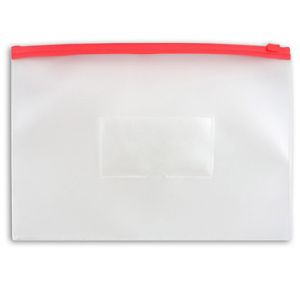Папка на молнии " Бюрократ " МАЛЫЙ ФОРМАТ Travel (265*148мм)ZIP красная молния, пластик 0,15мм, прозрачная, карман под визитку
