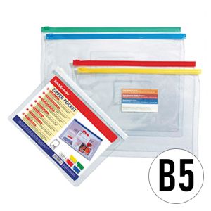 ZIP-пакет формата B5 из высококачественного прозрачного пластика с текстурой поверхности "зеркало". Предназначен для хранения и транспортировки небольшого количества документов. Удобная ZIP-молния обеспечивает быстрый доступ к бумагам, оснащен карманом для визитной карточки. Размер - 288х210мм, толщина - 0.14мм. Код и баркод на каждой единице товара.
